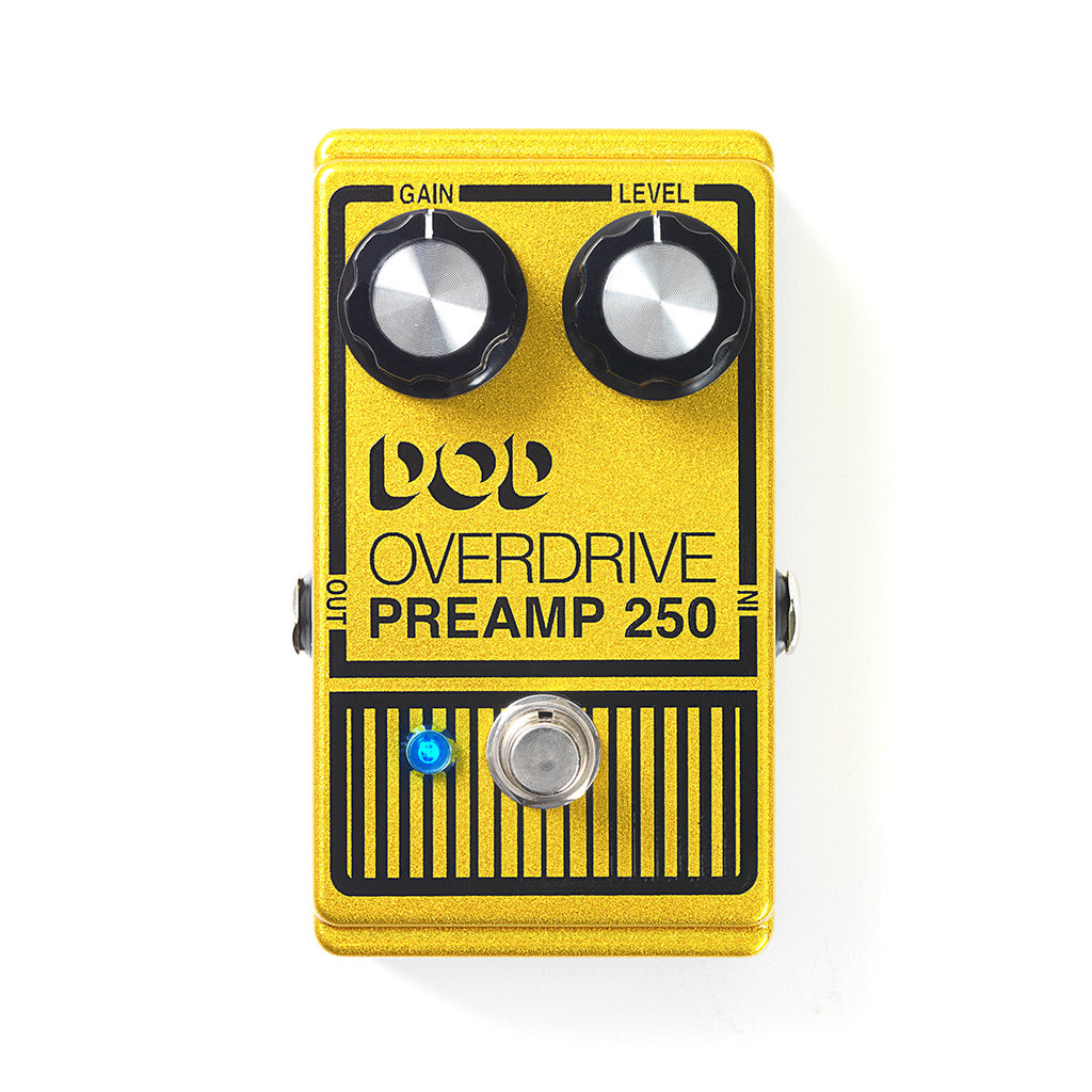 The DOD Overdrive Preamp 250 is an analogue legend with over 40 years of history. Reissued in 2013, it’s better than ever, having been updated with true-bypass which won’t colour your tone when the unit is switched off, a crisp, blue LED indicator, tons of output, and a 9V DC power supply input. Built with a lighter aluminium chassis, with the same Level and Gain controls of the original, the DOD 250 is ideal for players who like to clean up their tone and just clip the top of the signal, or with the Gain all the way down, crank up the Level for a volume boost when soloing.