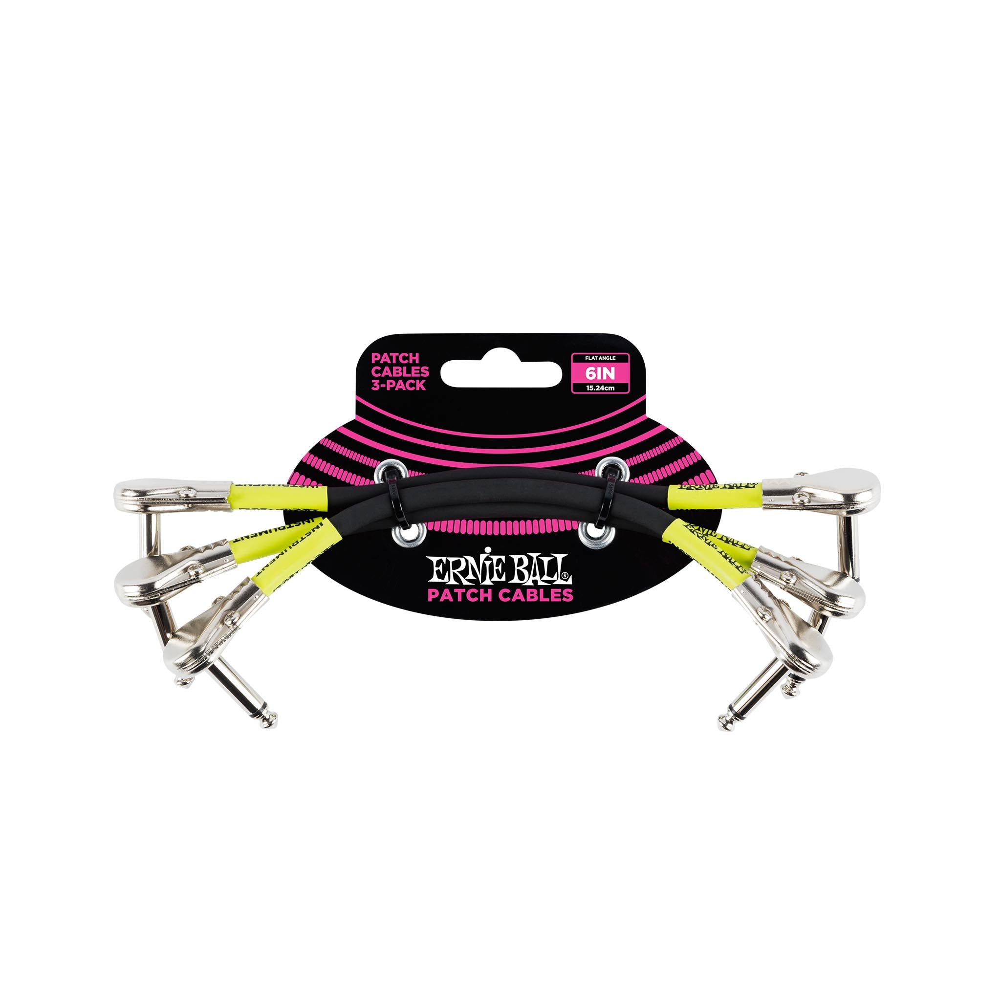 Ernie Ball 6" Flat Angle to Flat Angle Patch Cable, 3-Pack, Black