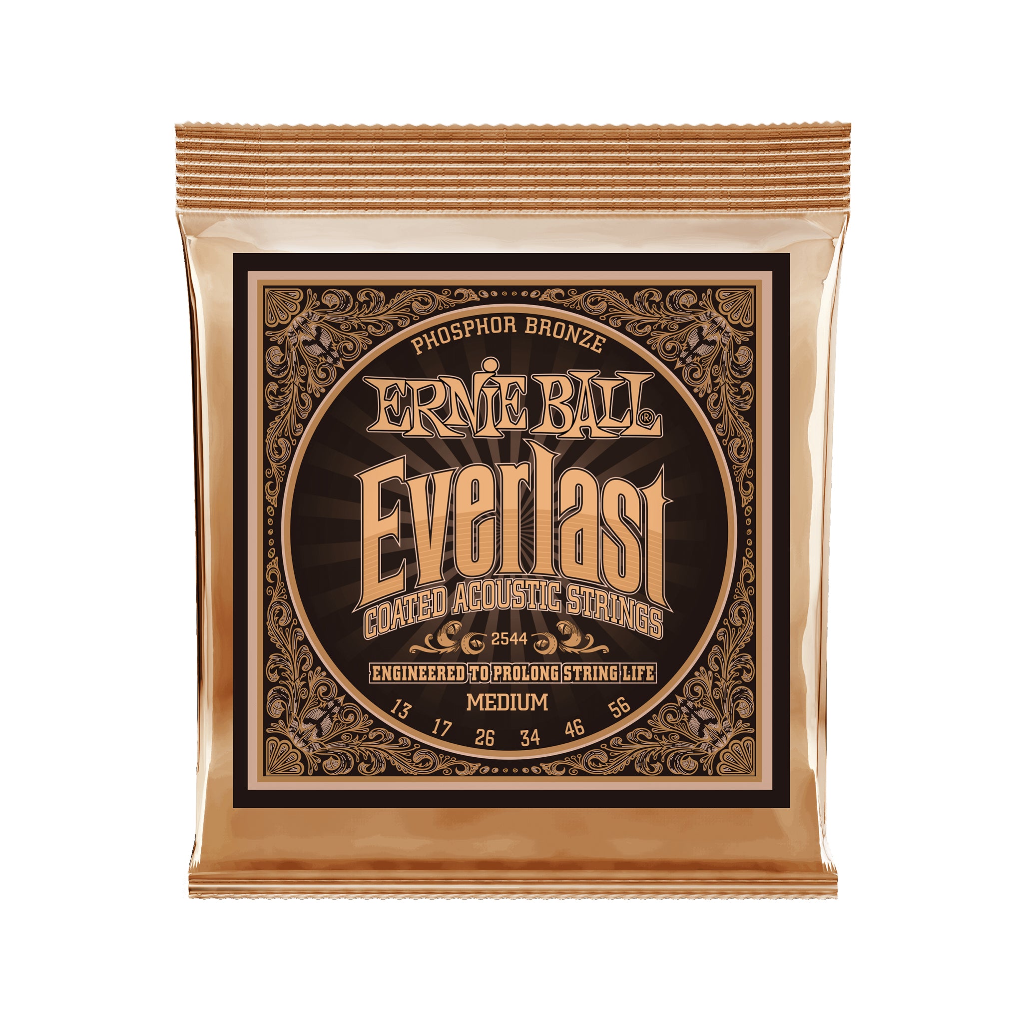Ernie Ball Everlast Medium Coated Phosphor Bronze Acoustic Guitar Strings, 13-56 (P02544)