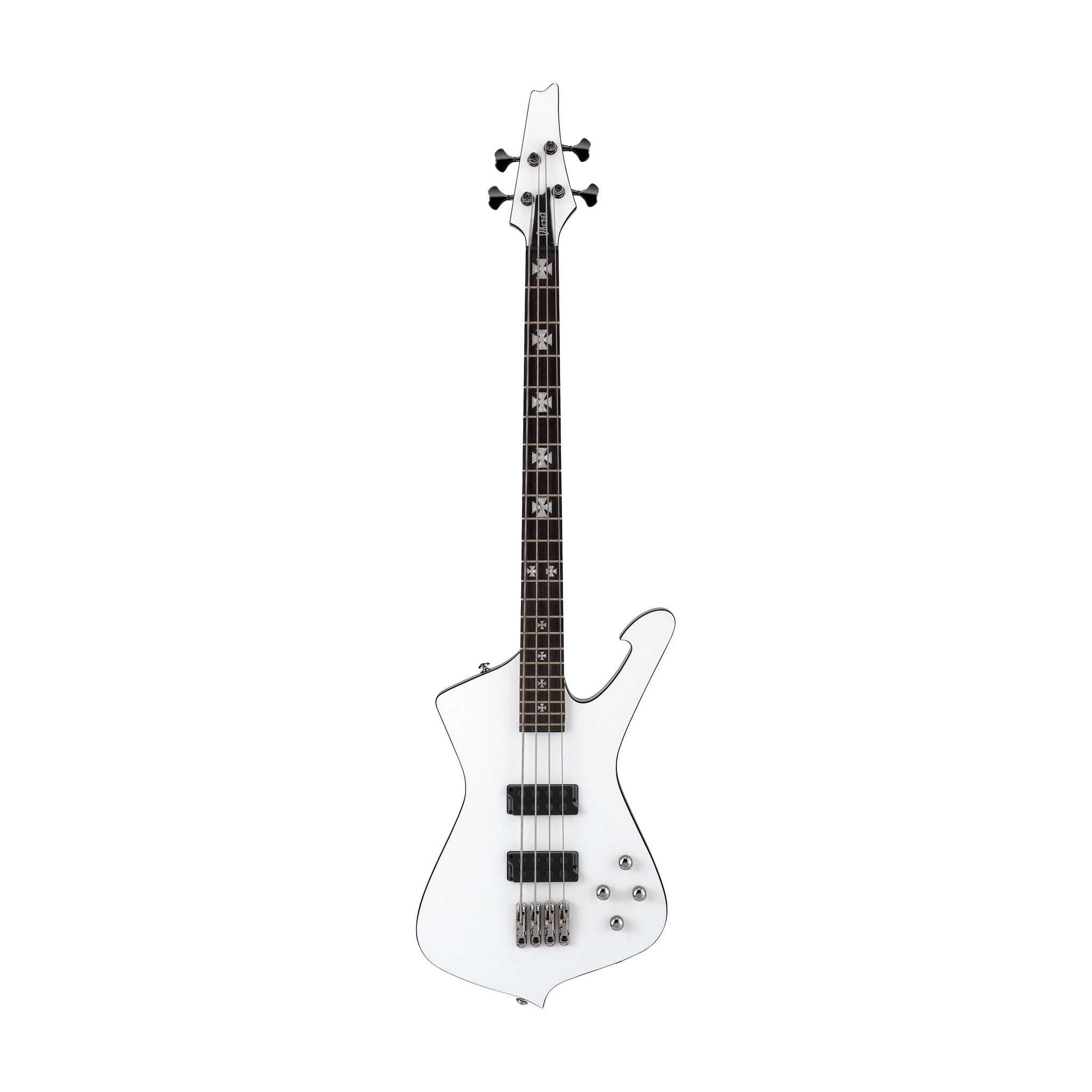 The SDB3 Signature bass is designed for punishing low end and punchy growl with plenty of attack. The rosewood fretboard has truly menacing iron cross inlays and awesome cosmo black hardware. The unique body shape gives the bass suprising balance for ease of play. The PFR-N4 and PFR-B4 pickups produce a well-rounded range of tones to handle any sound you need.