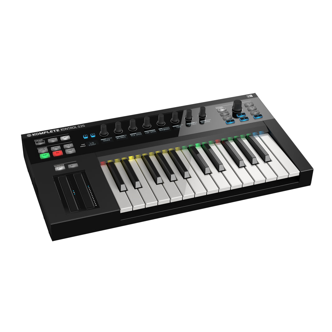 KOMPLETE KONTROL S25 is a small keyboard, packed full of big ideas: It combines a best-in-class keybed with advanced control software and vivid visual feedback to form a compact centerpiece for any studio setup. Get hands-on control of all your instruments and effects from one award-winning keyboard.